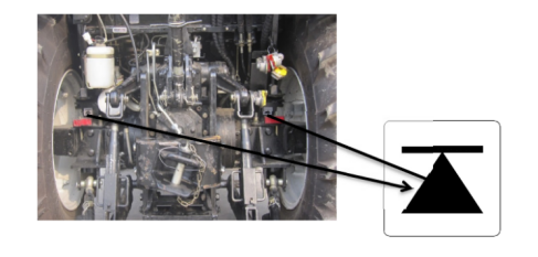 Meaning: When the lifting lever control system works, stays far away from the effective space of lifting lever, otherwise it may cause the personal injuries! Post position: right from the rear side of mudguard