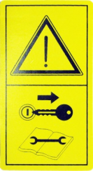Meaning: prior to the service, maintenance and adjustment, the engine should be shut down, the key taken out, then perform according to the requirements set out in the instruction for use. Post position: in front of the instrument panel.